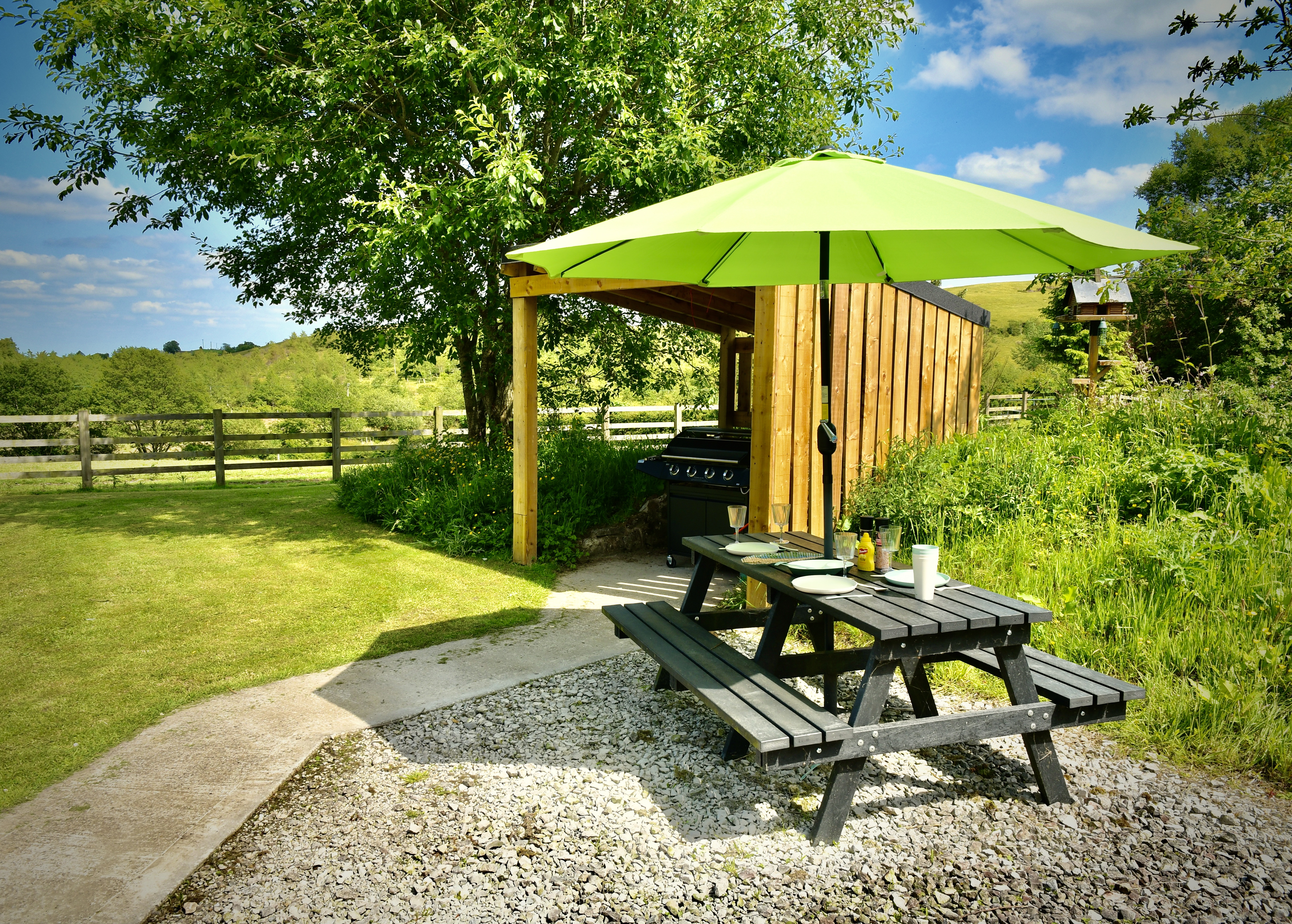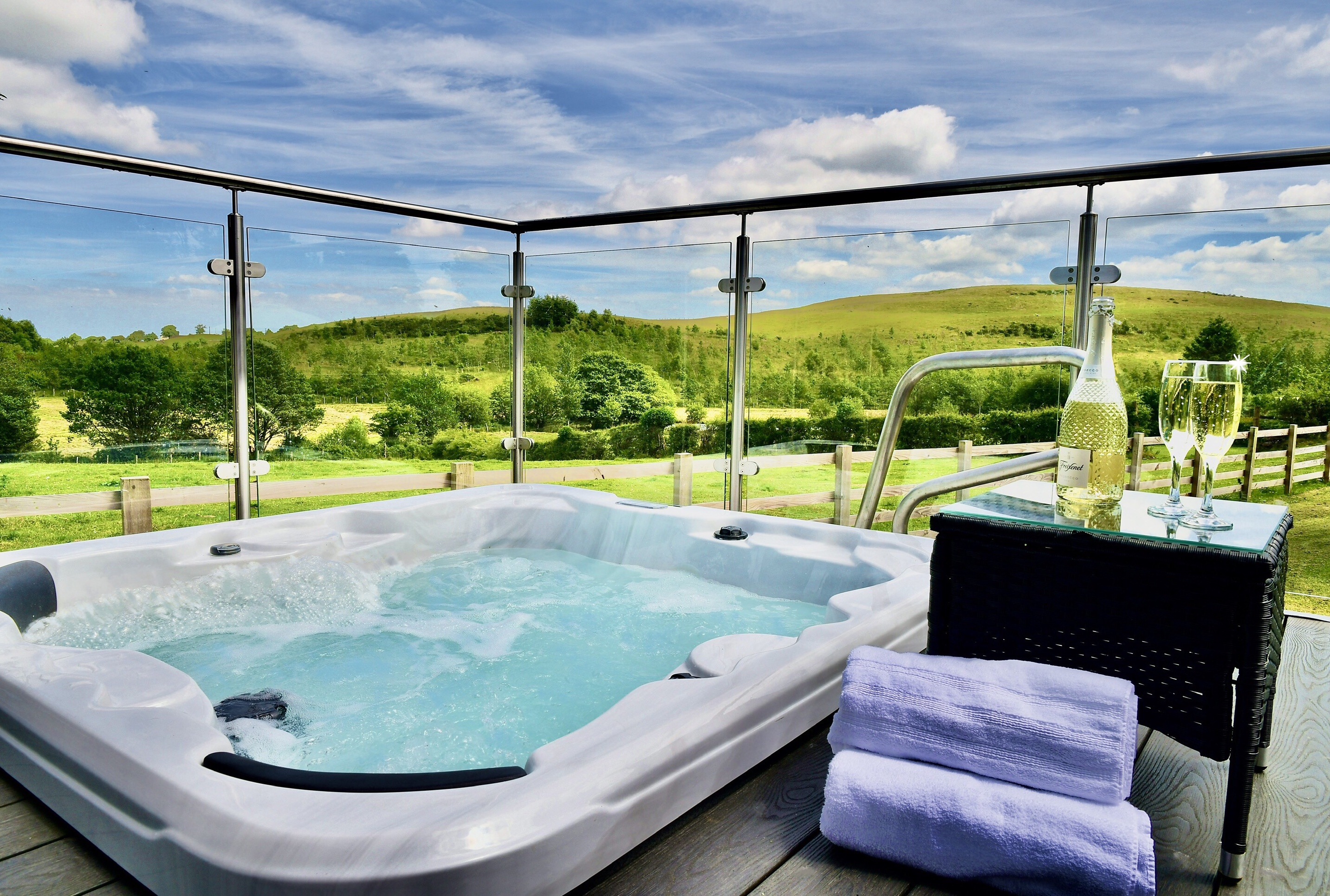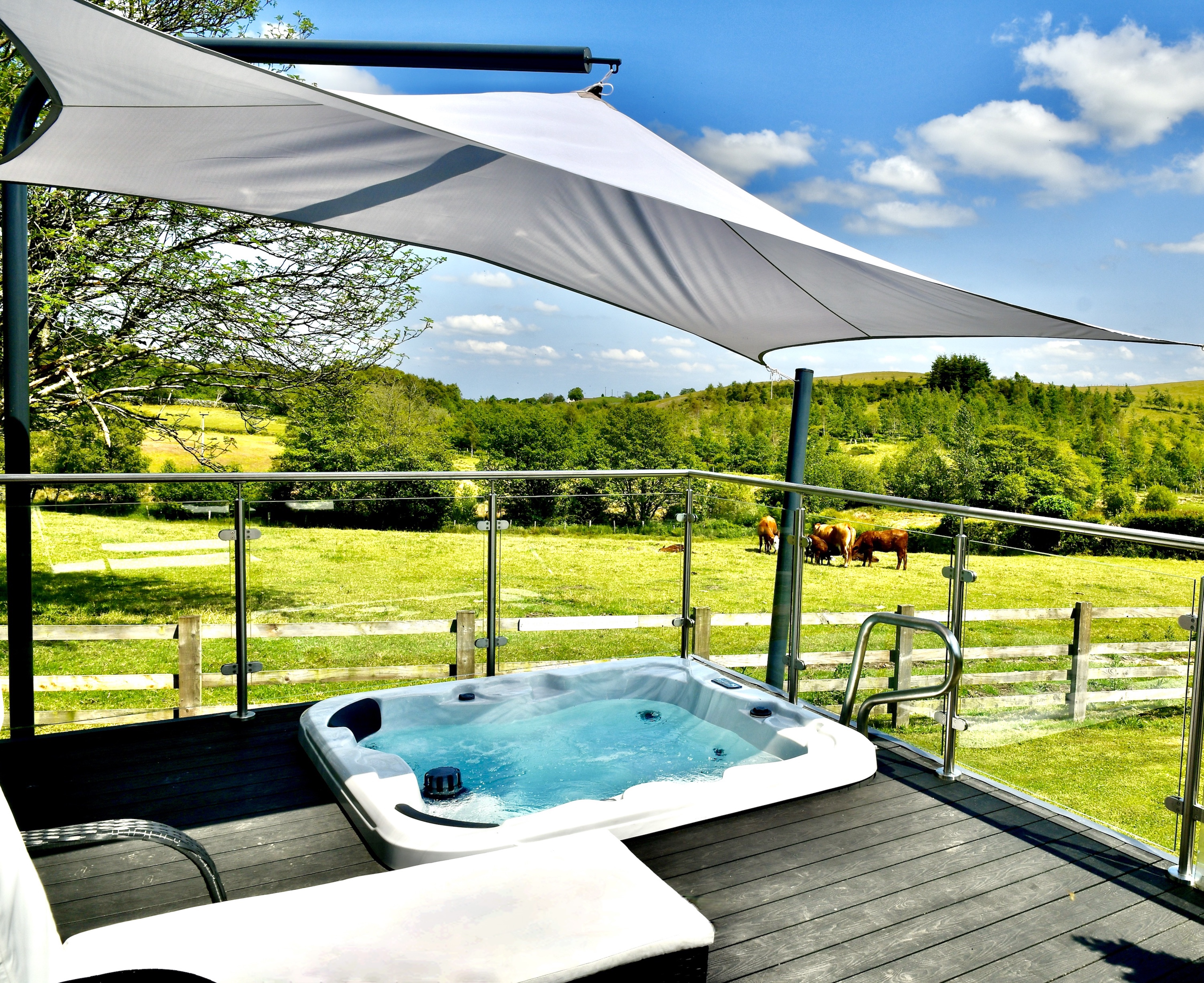 Soak away the day’s exertions in the luxurious main bathroom, with its spacious bath and fitted shower. The master bedroom also has an en suite bathroom with walk-in shower, or you have a private outdoor hot tub with panoramic views, for those long, lazy summer evenings. -