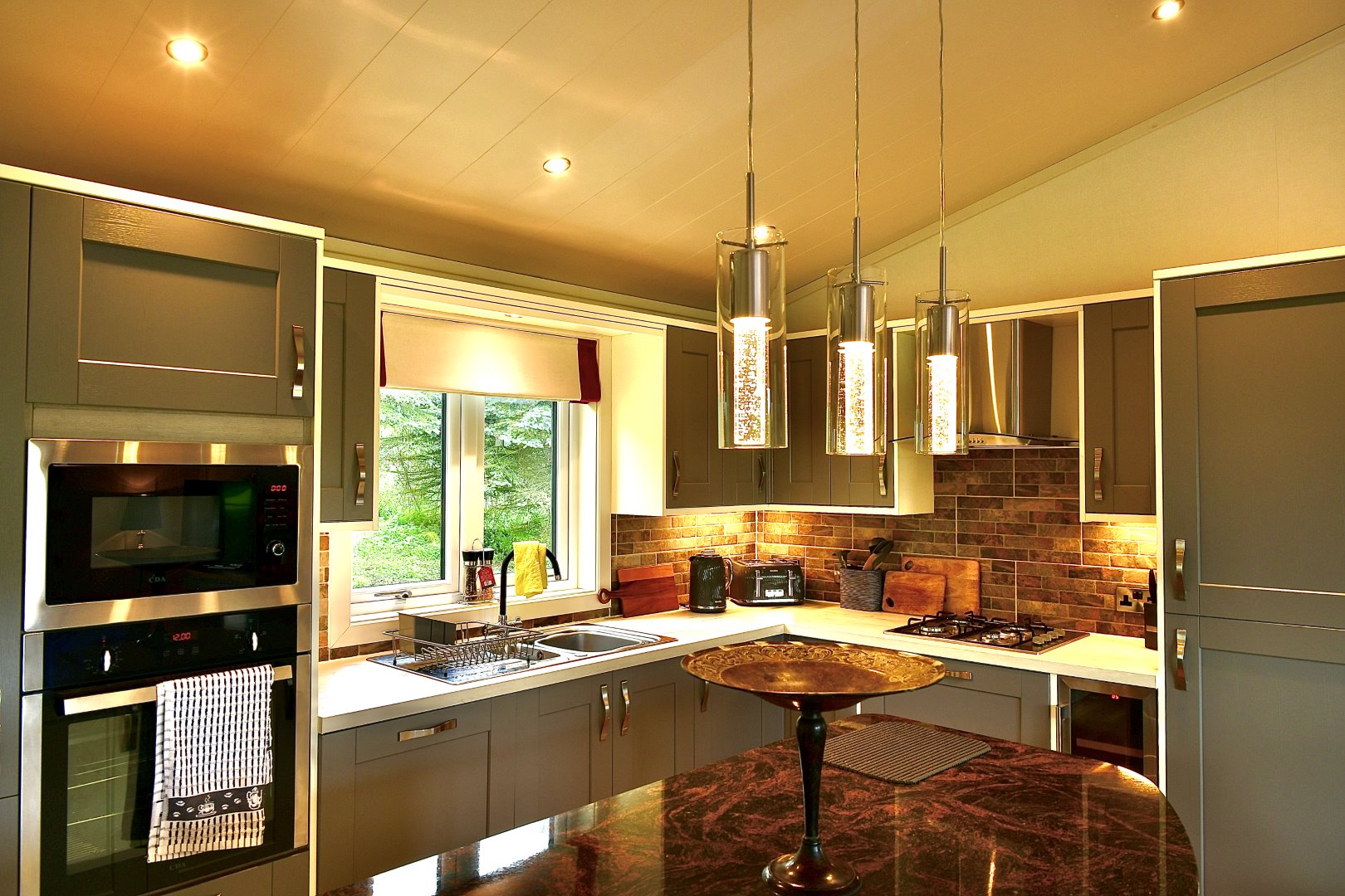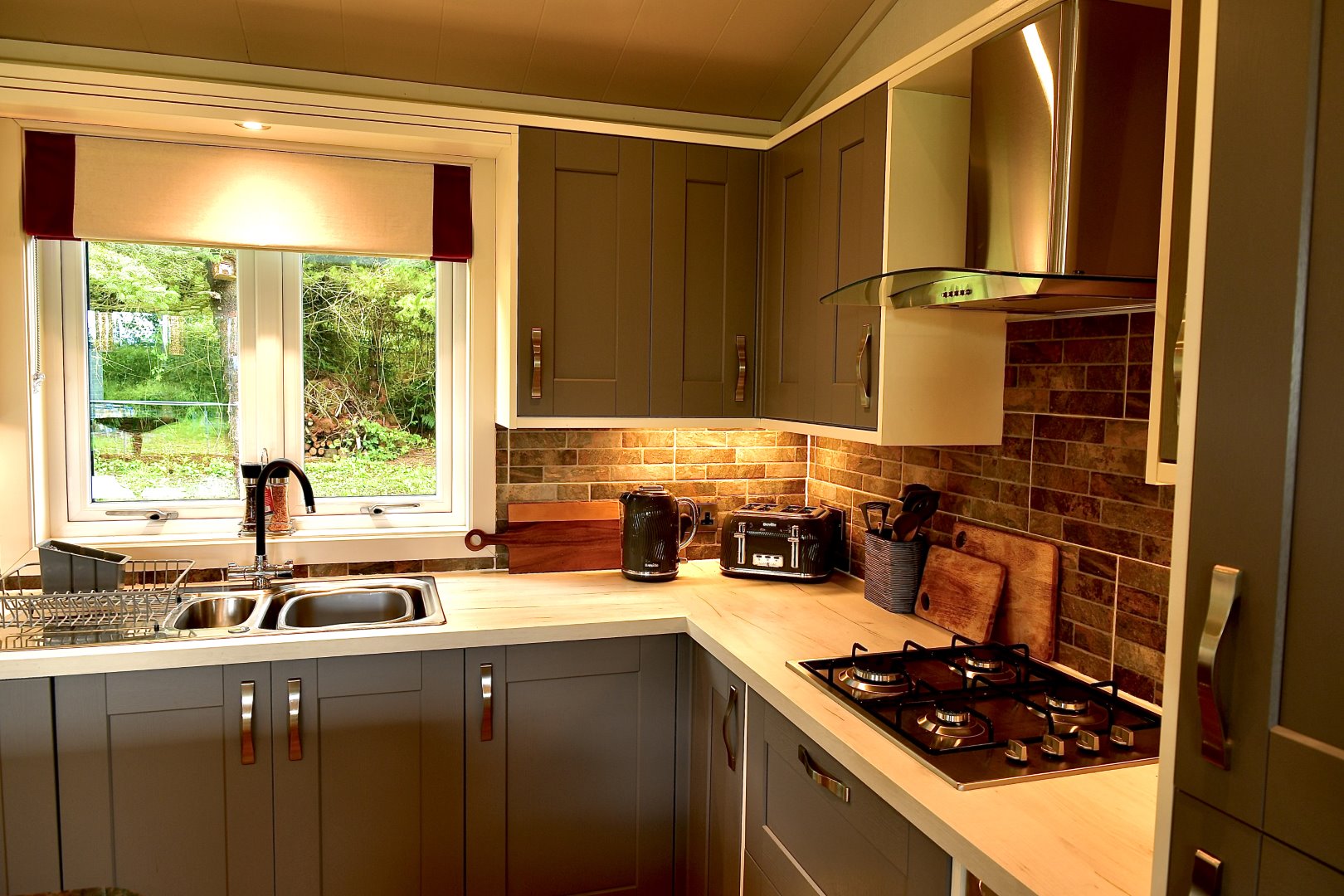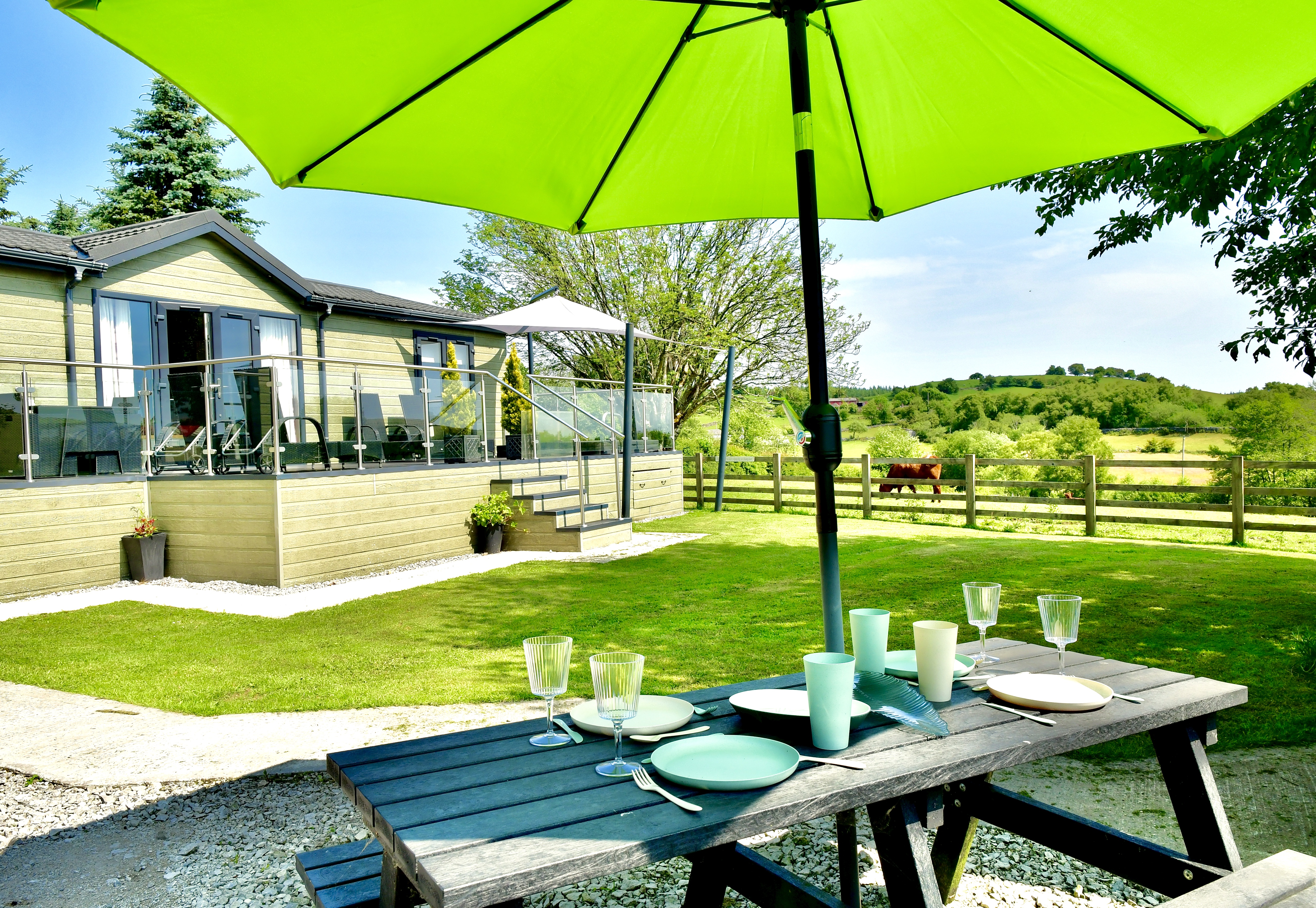 Your spacious open-plan living area is the perfect place to relax after a busy day of adventure. Sink into soft, welcoming sofas, switch on the HD TV and enjoy a film on the DVD player to keep the whole family entertained. -